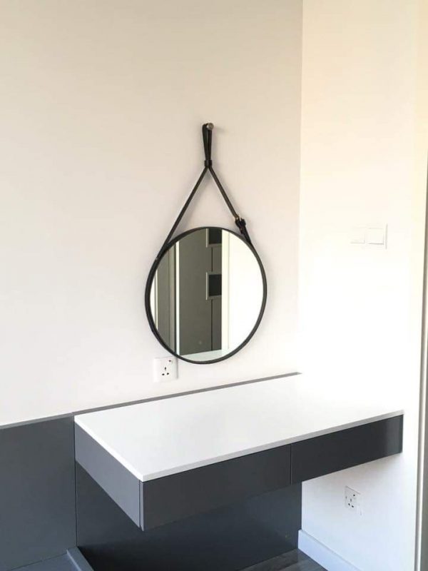 - Viền gương được làm từ da bò bền bỉ với độ ẩm cao trong phòng tắm